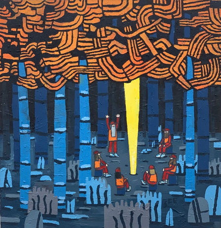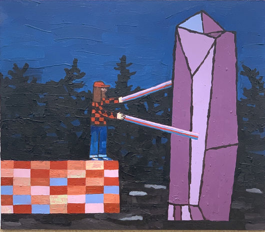 His rough hewn paintings extend this expansion of awareness as mysterious events happen in wilderness environments.
